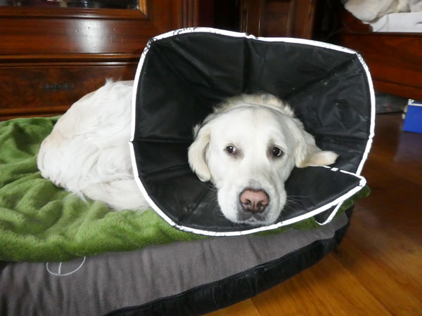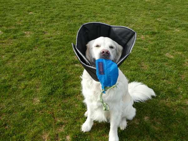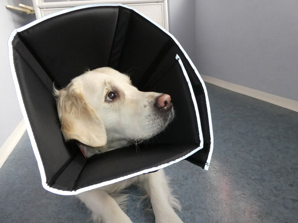 Beobachte zunächst, wie dein Hund sich beim Tragen eines Hundekragen nach der OP verhält. Einige Hunde haben mehr und andere weniger Schwierigkeiten, sich in dem eingeschränkten Sichtfeld zurecht zu finden.